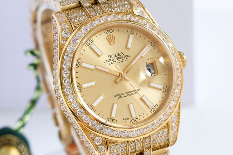 春もの新作 ロレックス 時計 スーパーコピー デイトジャスト 41MM シャンパン ダイヤモンドベゼル 18K roz21973