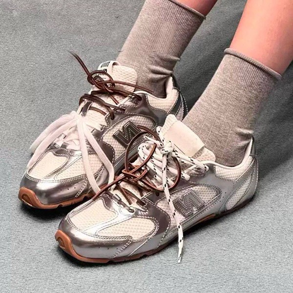 ニューバランス x ミュウミュウ コピー 530 SL メタリックレザーxメッシュ スニーカー 5E165E