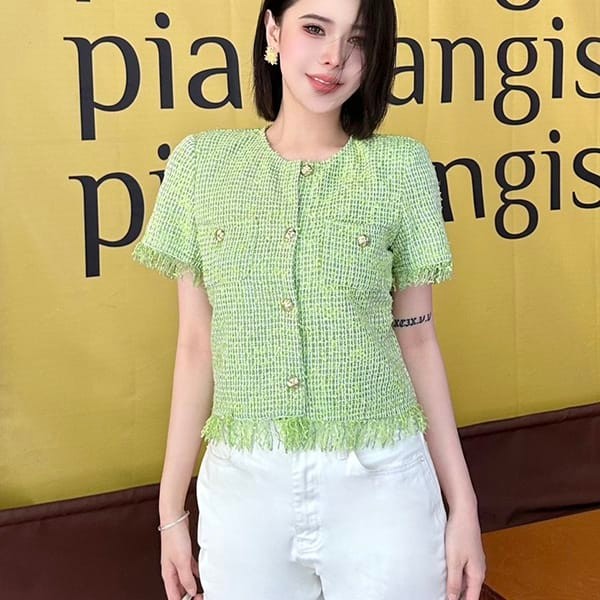 目を惹くカラーシャネル 袖フリルニットカーディガン パロディ shu00949