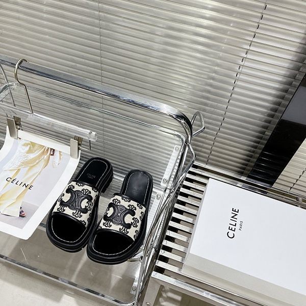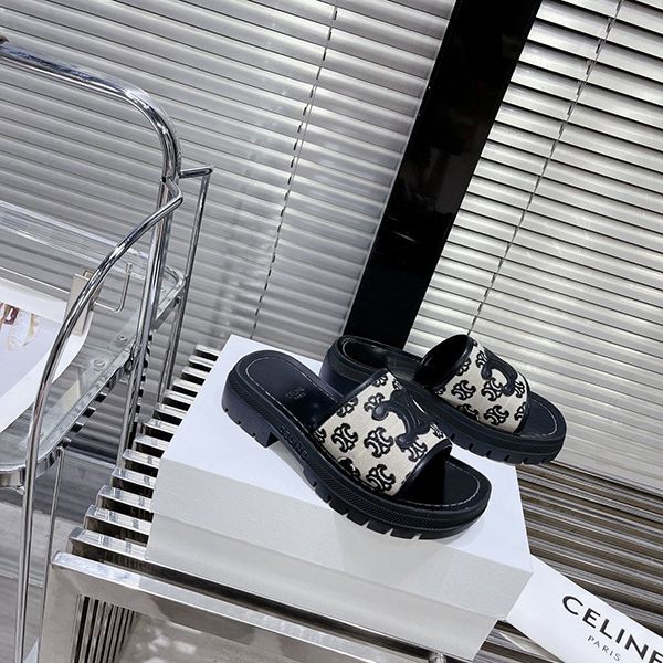 足元上品に♪【セリーヌ】トリオンフ 偽物 レザー ミュール サンダル Cex24114