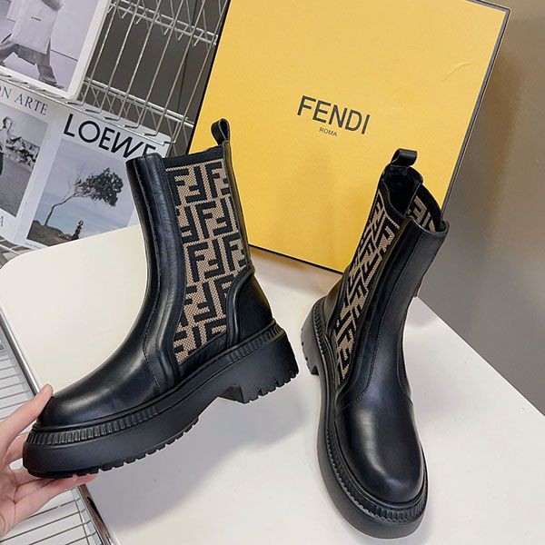 一目惚れ♪ フェンディ レザーストレッチファブリック バイカーブーツ 偽物 fec44917