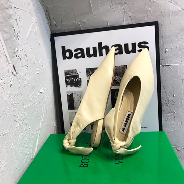 ジルサンダー 偽物 バックストラップ付 レザー ヒール パンプス Jip35431