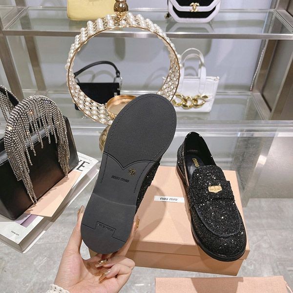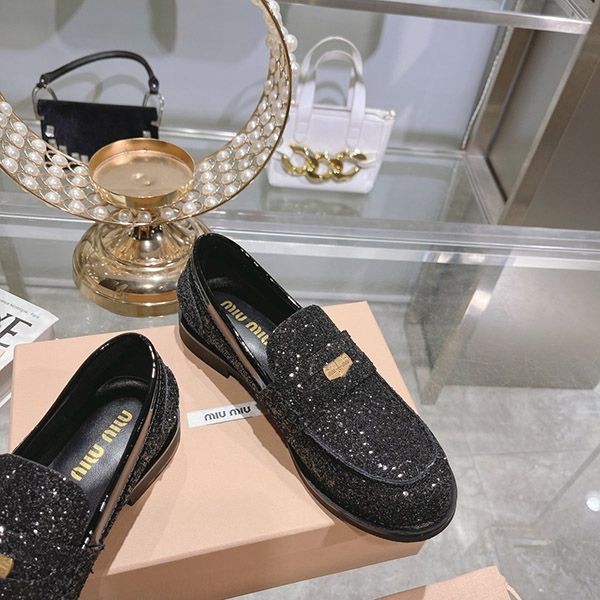ブランド:ミュウミュウ偽物ミュウミュウ グリッターローファー