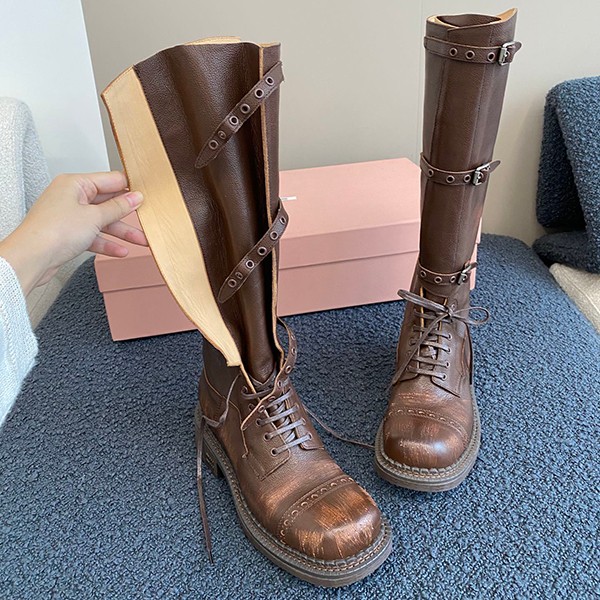 セール新作ミュウミュウ n級品 レザー ロングブーツ myk16924
