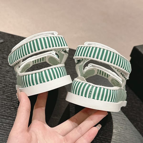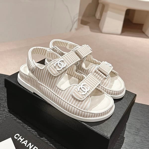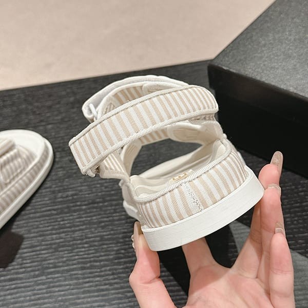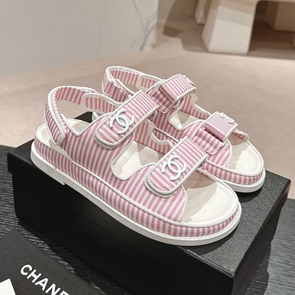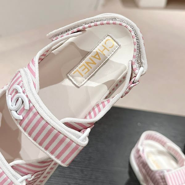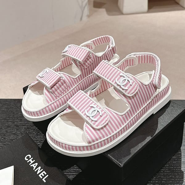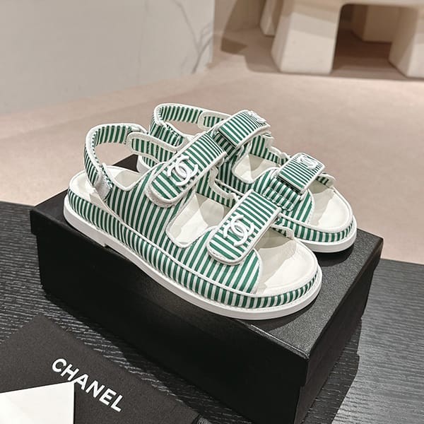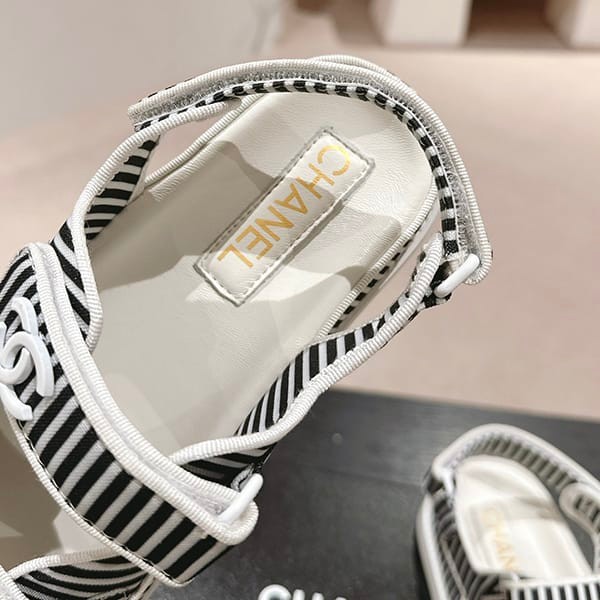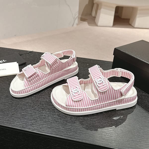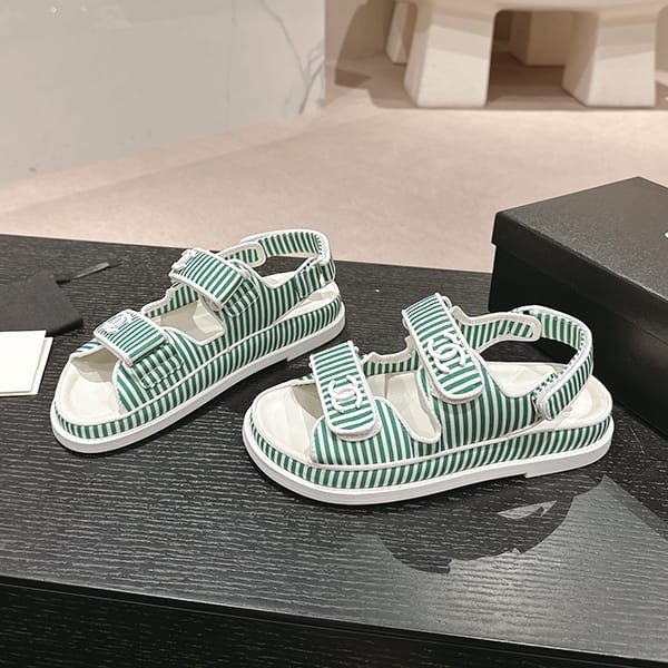 セレブ多数愛用シャネル パロディ ボーダー CCロゴ フッドベッド サンダル 4色 shs04659