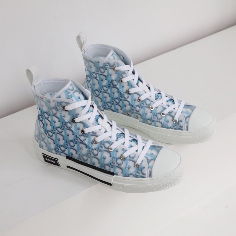 【即発】ディオール 偽物 B23 ハイトップスニーカー★オブリーク ピクセル キャンバス 青 3SH118YTG_H165