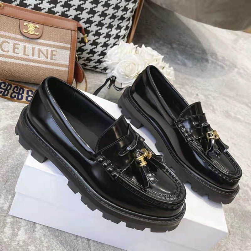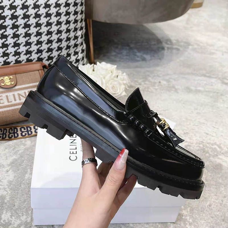 人気No1 セリーヌ☆ルコ トリオンフ ポリッシュドカーフスキン ローファー 偽物 Cew71533