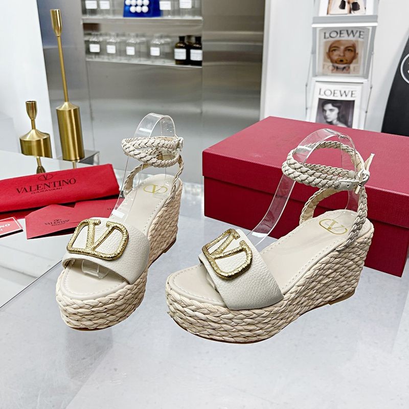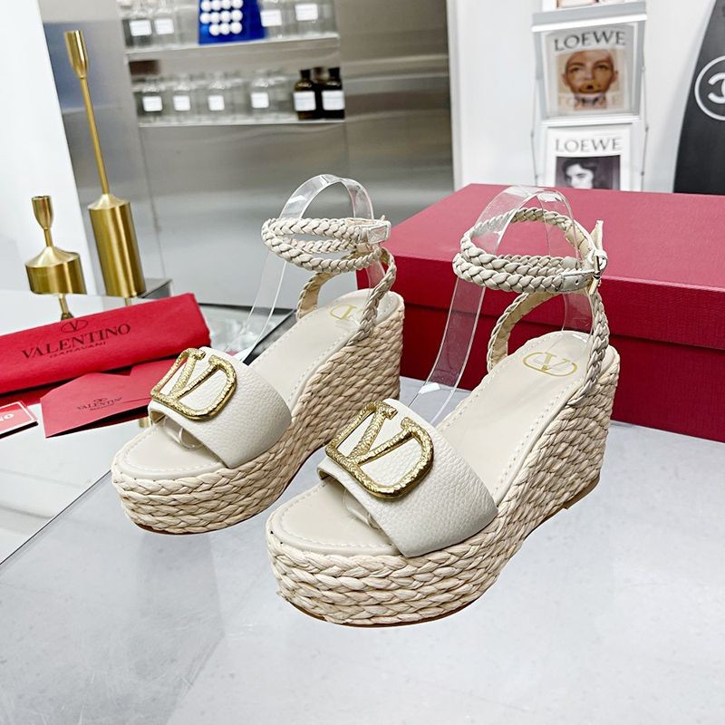★日本!!人気!ヴァレンティノ ストラップウェッジサンダル 偽物 ラフィア ピンク outlet Vun99610