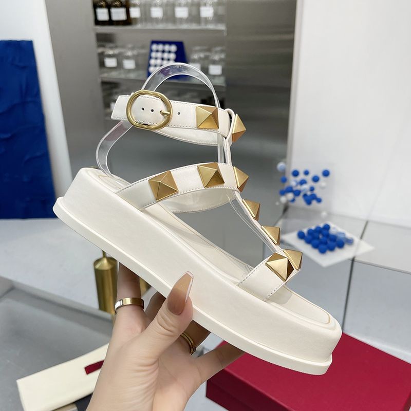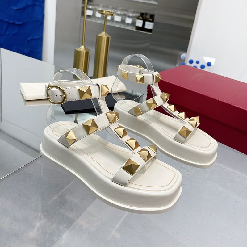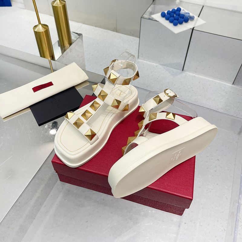 入手困難 ヴァレンティノ フラットフォーム ローマンスタッズ サンダル 偽物 40MM Vuk86118