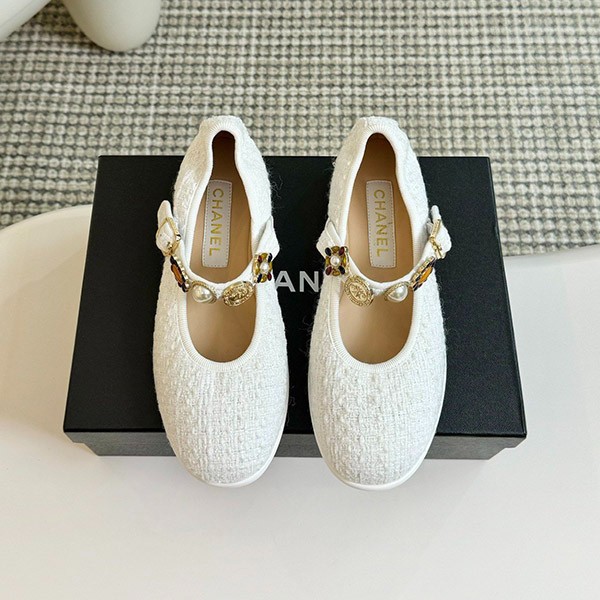 【レトロな可愛い足元に♪】シャネル メリージェーン バレエシューズ 偽物 ツイード sho21646
