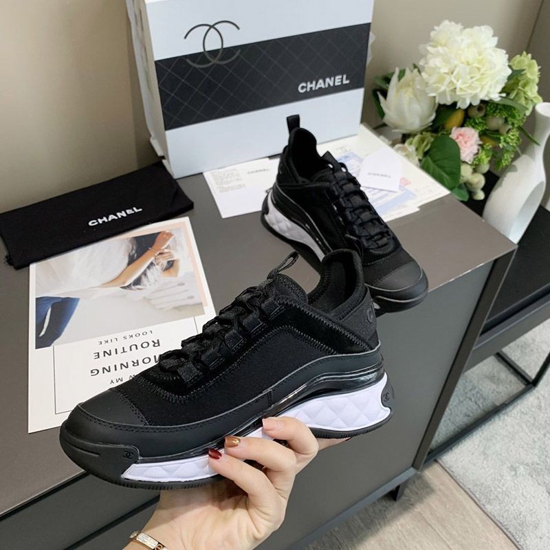超人気♪シャネル スエード ベルベッド スニーカーコピー ブラック shv39882