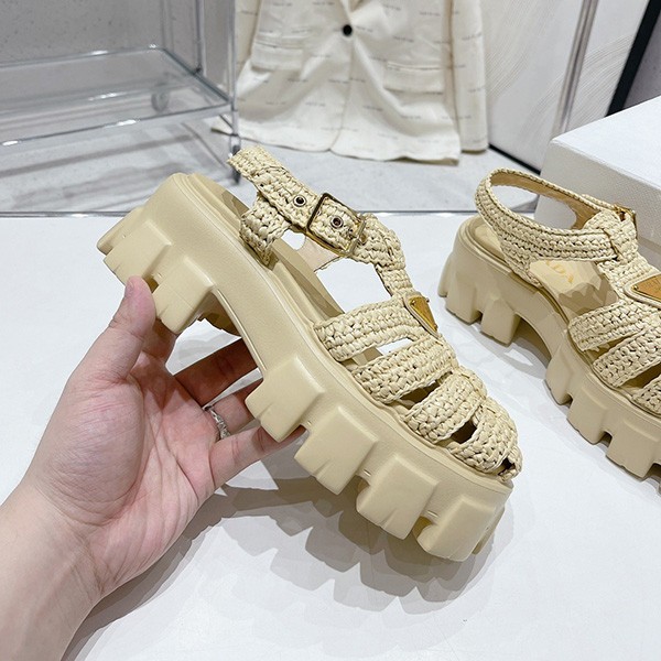 プラダ コピー トライアングルロゴ付き モノリス ラフィア サンダル pus37790