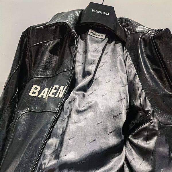 バレンシアガ ラムレザージャケット 偽物 ブラック baq76156