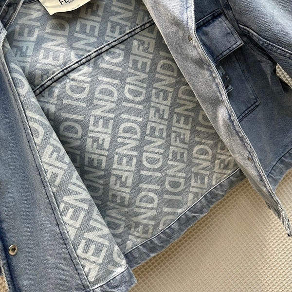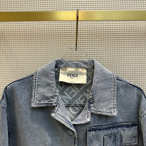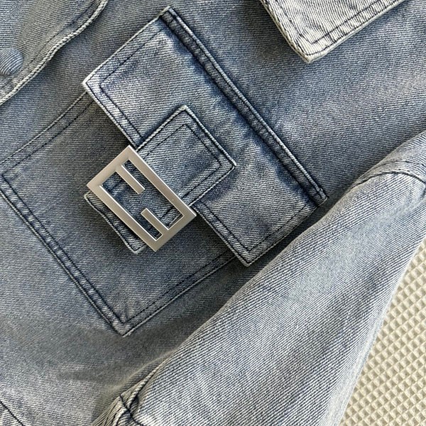 入手困難 フェンディ 偽物 クロップド丈 FFバゲット装飾 半袖 デニムジャケット fep41634