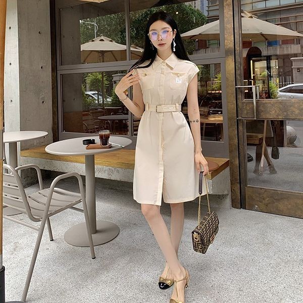 ブランド:フェンディ偽物新色登場☆フェンディ ベルテッド・ワンピース 偽物 ホワイト