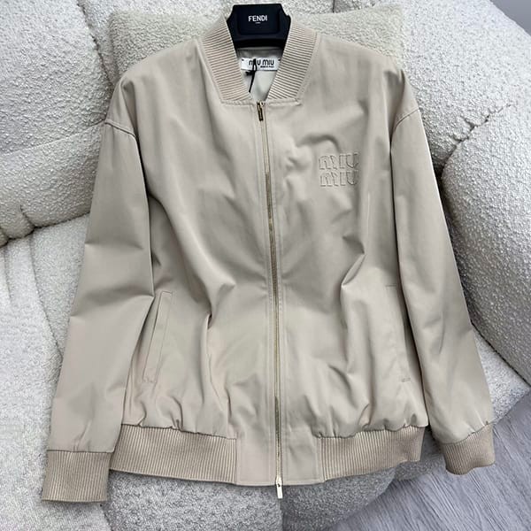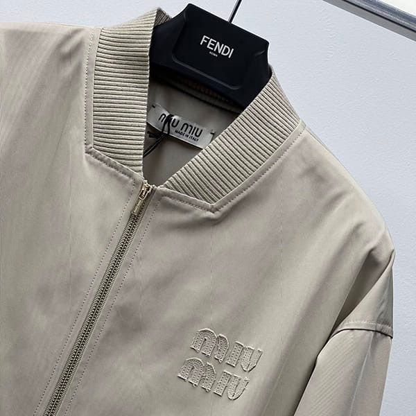 ギフトに最適ミュウミュウ コピー ロゴ刺繍入り パナマコットンボンバー ジャケット myd71016