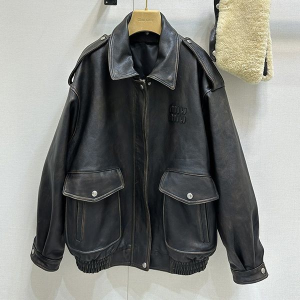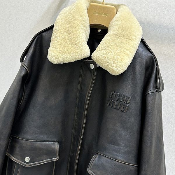 超限定♪ミュウミュウ シアリングトリム レザージャケット 偽物 myu06779