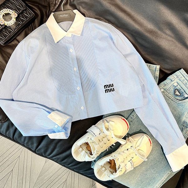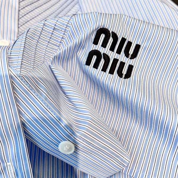 完売必至 ミュウミュウ ロゴストライプシャンブレー シャツ 偽物 myd23368