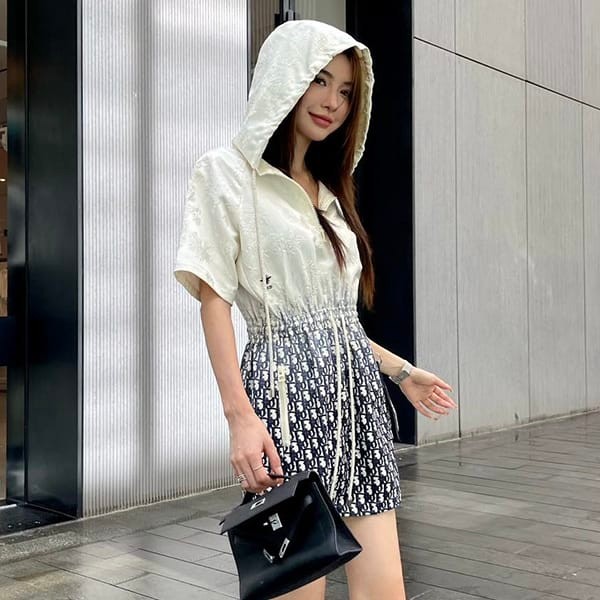 送料無料ディオール ショートフード付きドレス 半袖 コピー dea10230