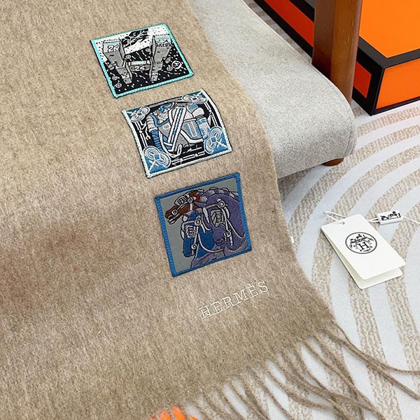 エルメス カシミヤマフラー 偽物《バッジ・ソワ》 H394801T01