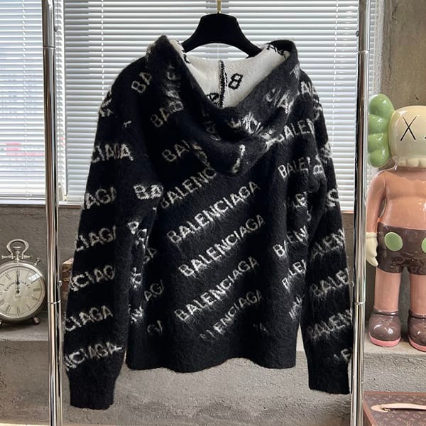 高品質バレンシアガ 偽物 ロゴ フード リブ編み ニットトップ パーカー bay09783