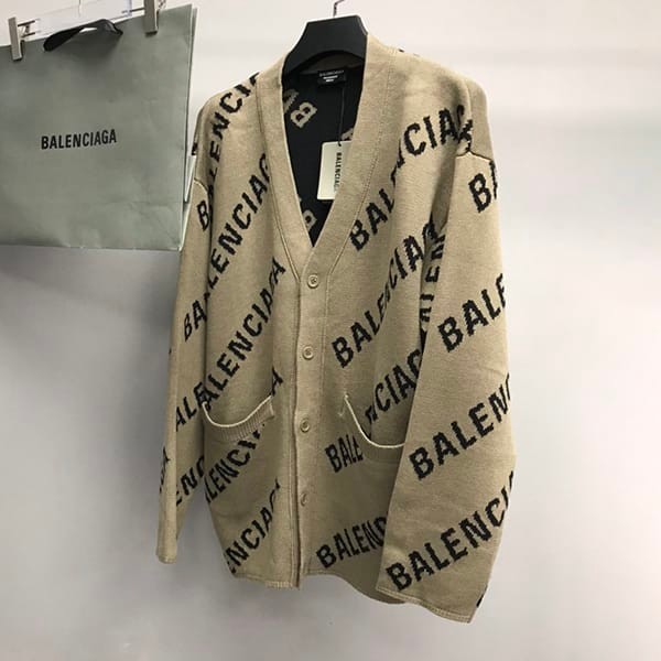 一目惚れ♪バレンシアガ ロゴ総柄カーデガン ピンク ウールニット コピー baa66353
