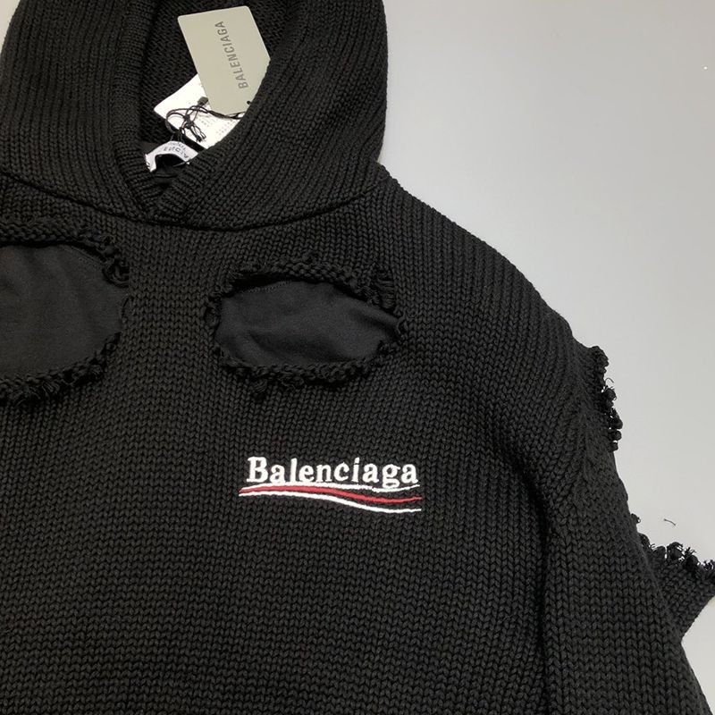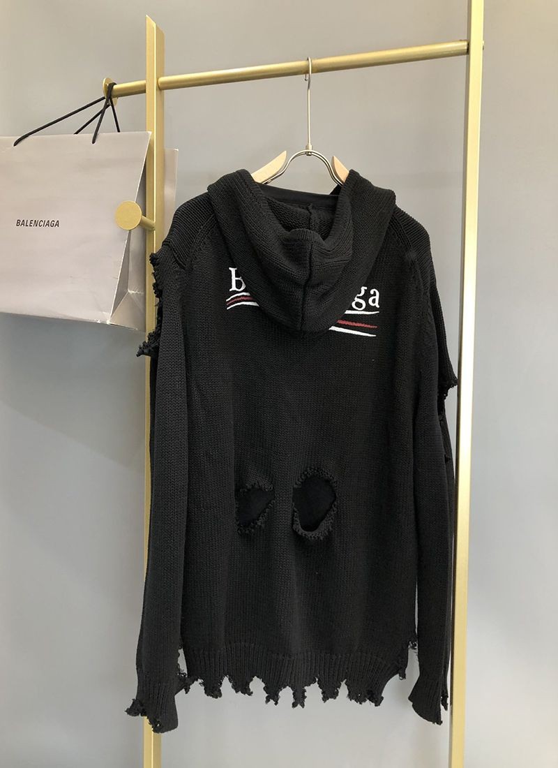 バレンシアガ Political Campaign Destroyed パーカー コピー★ニットウェア ブラック 662718T32121069