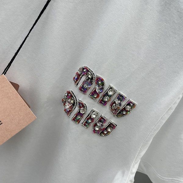 即発送 ミュウミュウ 刺繍入りコットンTシャツ 偽物 myf59063