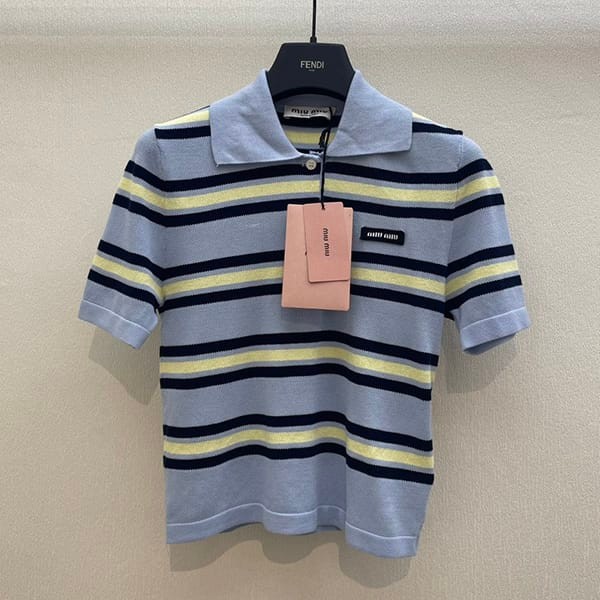 人気急上昇ミュウミュウ 偽物 コットンとシルクのニットポロシャツ 2色 MML88014AX F0061SOOO