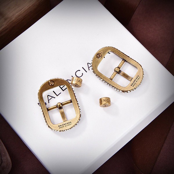 バレンシアガ 偽物☆CAGOLE バックル ラインストーン付ピアス シルバー 2色 bac61011