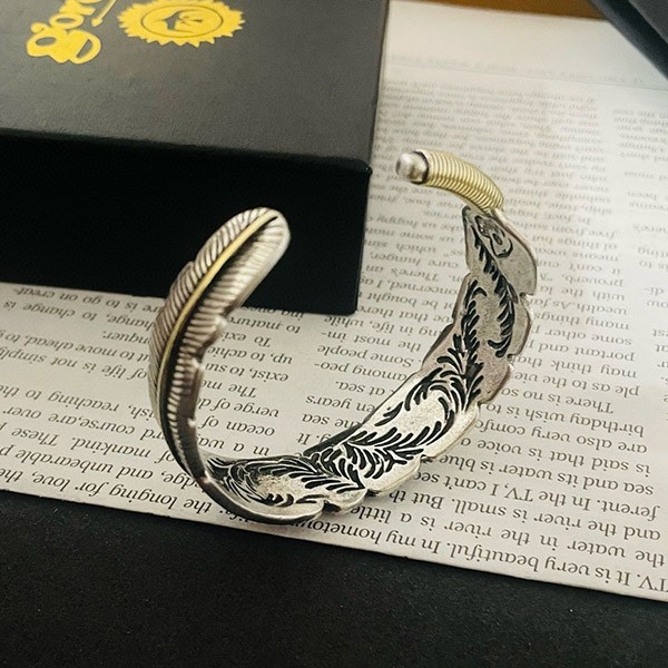 ブランド:ゴローズ偽物ゴローズ スーパーコピー フェザー 羽 シルバーバングル ブレスレット