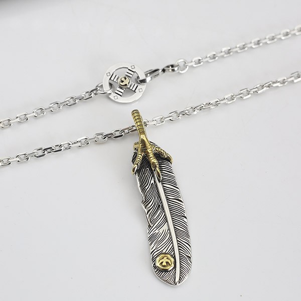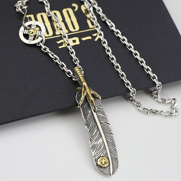 すぐ届く ゴローズ モンテカルロ 偽物 シルバー925 金爪フェザーネックレス、イーグルメタル シルバーフェザー ネックレス 送料無料 goi36987