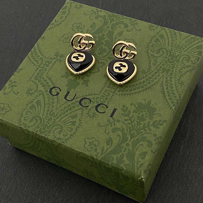 送料込 グッチ★インターロッキングG エナメル ハート付き ピアス gue77274
