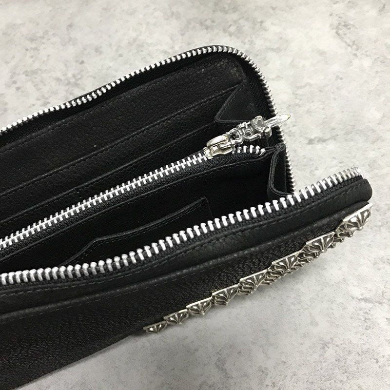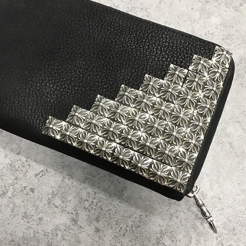 追跡付き発送 クロムハーツ 偽物/ RECFピラミッド デストロイBLKレザー長財布 Kuh62681