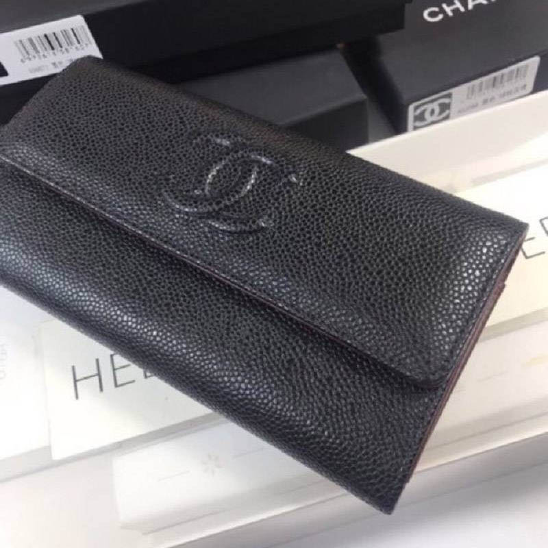 人気 シャネル キャビアスキン 偽物 ココマーク 二つ折り長財布 sho97441