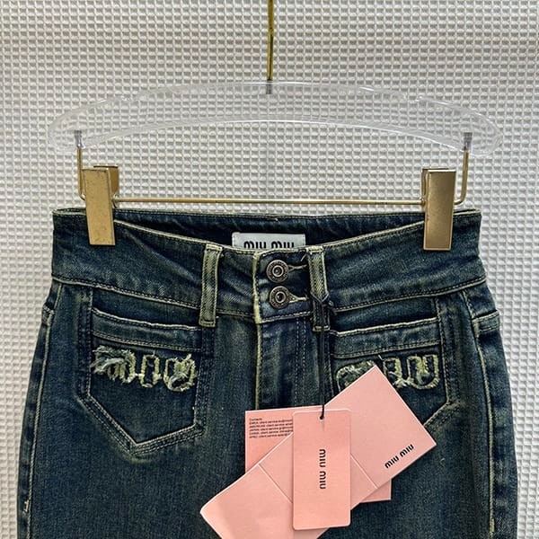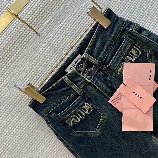 一目惚れ♪ミュウミュウ ロゴ デニム パンツ リラックス コピー myl25996