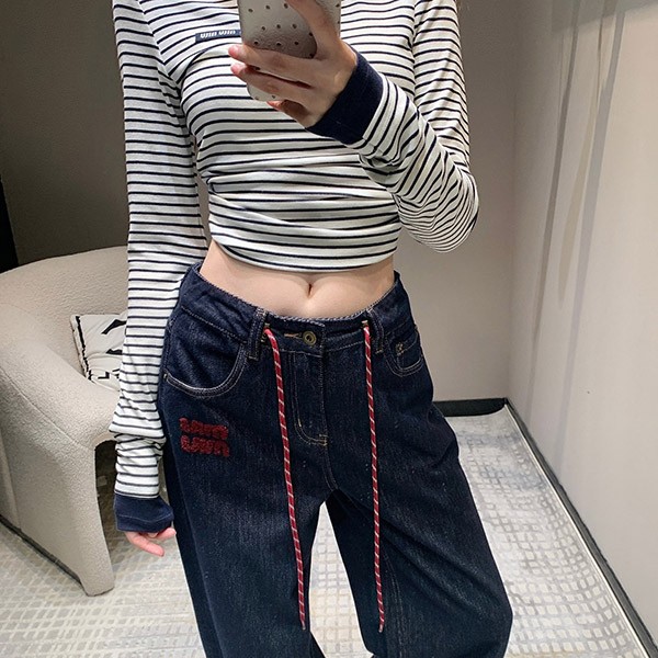 n級 おすすめ ミュウミュウ プリーツ コピー ロゴ デニム ジーンズ myy02214