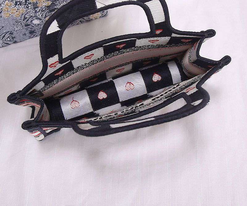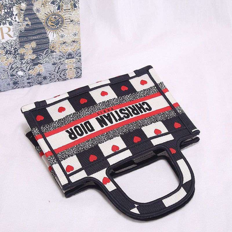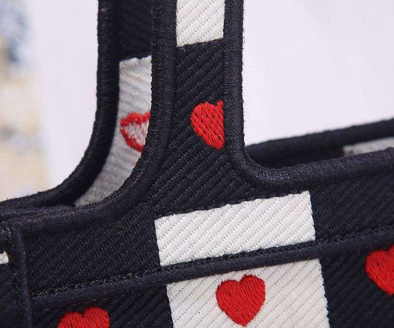 目を惹くカラーディオール ブックトート 偽物 ミニバッグ D-チェス ハート モチーフ エンブロイダリー deq18596