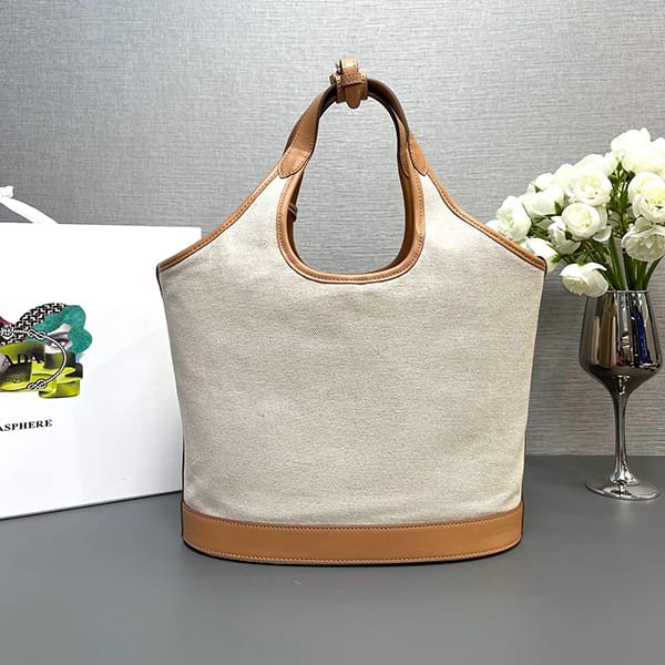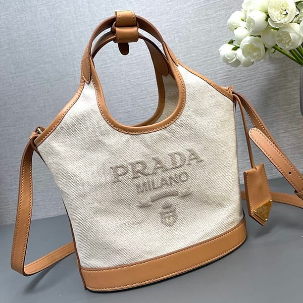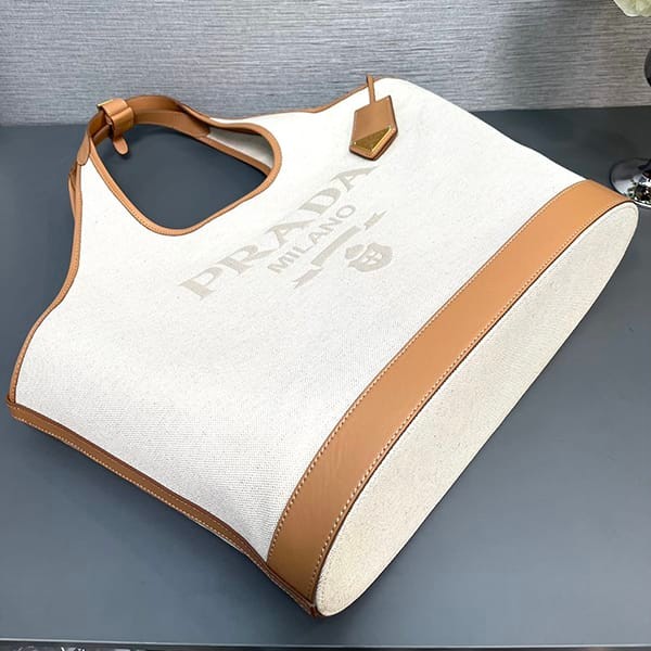 稀少プラダ パロディ リネンブレンド レザー トートバッグ ラージ 3サイズ puv47863