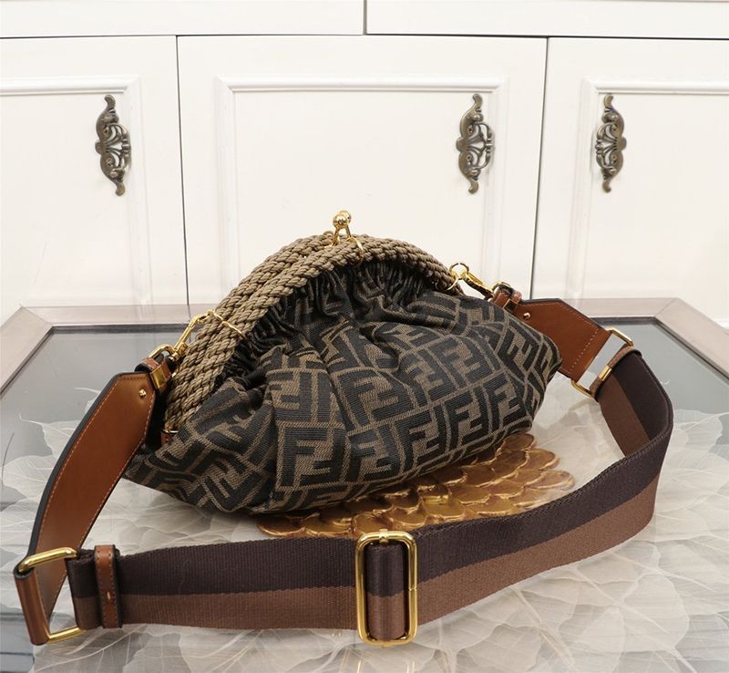 送料込フェンディ シェル 偽物 ブラウンFFファブリック ポシェット 8BP121AFKCF0A6E