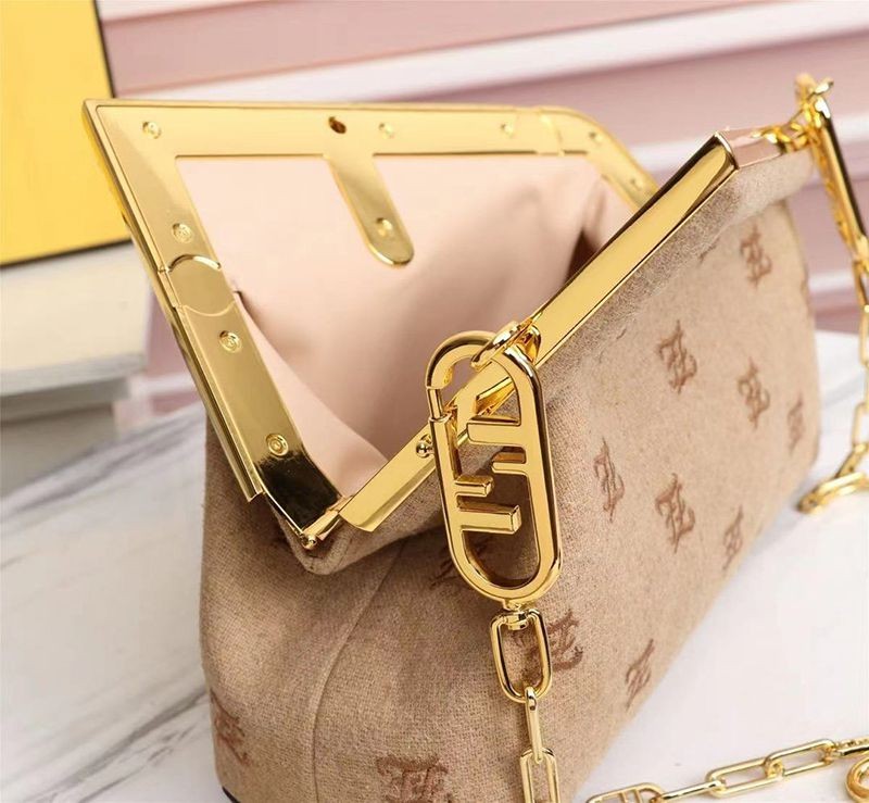 大人気!フェンディ ファースト 偽物 ミディアム ベージュフランネル バッグ 刺繍 8BP127AHNGF0J2D