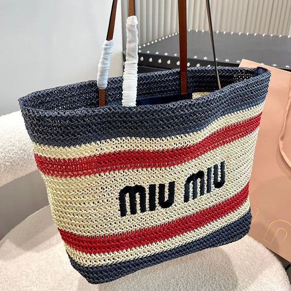 超話題!【ミュウミュウ】ラフィアxコットン トートバッグ 偽物 mys32015