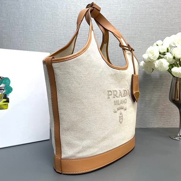 稀少プラダ パロディ リネンブレンド レザー トートバッグ ラージ 3サイズ puv47863