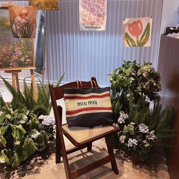 超話題!【ミュウミュウ】ラフィアxコットン トートバッグ 偽物 mys32015