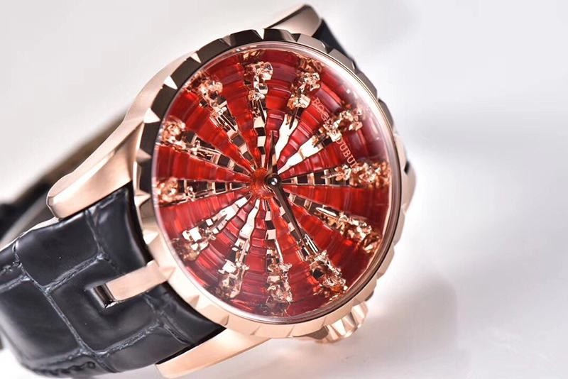 追跡付き発送ロジェデュブイ ナイツ オブ ザ ラウンドテーブル コピー ダマスカス レッド 45MM row35661