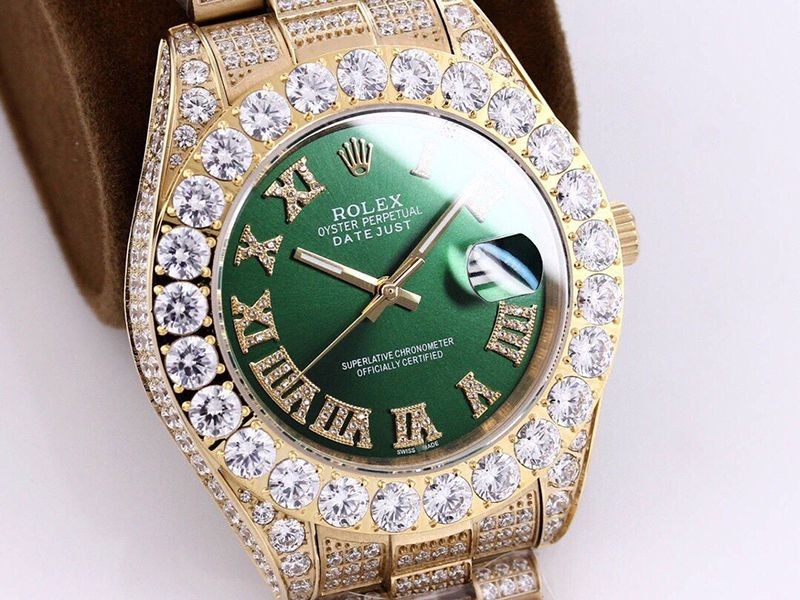 追跡付き発送 ロレックス 腕時計 スーパーコピー デイトジャスト 41mm グリーン 全面ダイヤ メンズ rom20696