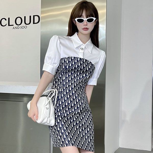【エレガントなシルエット☆】ディオール コピー ショート丈 ワンピース 白 黒 dek57605