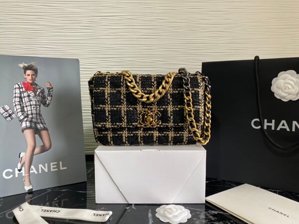 限定♪シャネル 19 チェーンウォレット ツイード ブラック AP0957